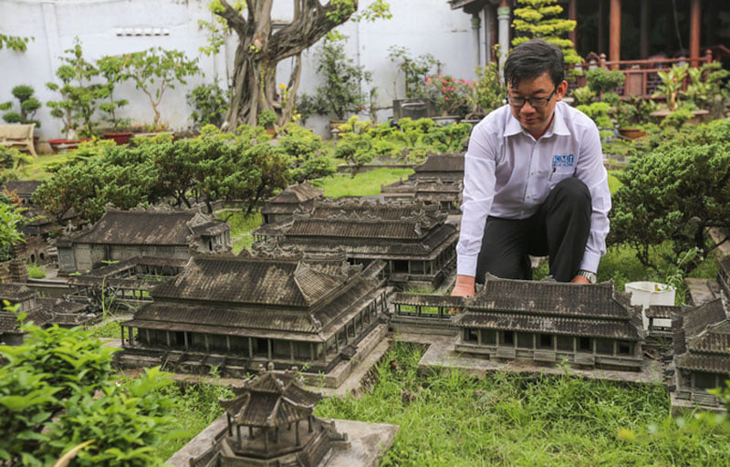Trên khu đất 1.000 m2 ở sau nhà (đường Hoàng Hữu Nam, quận 9, TP HCM), tiến sĩ Nguyễn Thanh Tùng (46 tuổi) dành làm không gian tái hiện lại toàn bộ quần thể di tích cố đô Huế theo tỷ lệ 1/700.